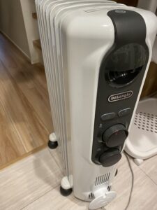 一方で1階の階段と脱衣所の中間あたりに1台オイルヒーターを置いているのですが、
